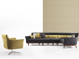 Designed by Katerina Zachariades and the in-house Morgan design team, new additions to the contemporary Modena, Lucca and Soho collections were unveiled. A distinctive feature of the Modena modular sofa is its show wood base with uninterrupted flowing line that links the units and avoids double legs. The corner unit, new for Clerkenwell, further enhances this design detail and meets the current demand for modularity; the modular combinations are extensive and make an impactful yet graceful presence in any space. A new Modena compact lounge chair with simplified show wood base enhances the collection’s versatility, perfect for office breakout areas.