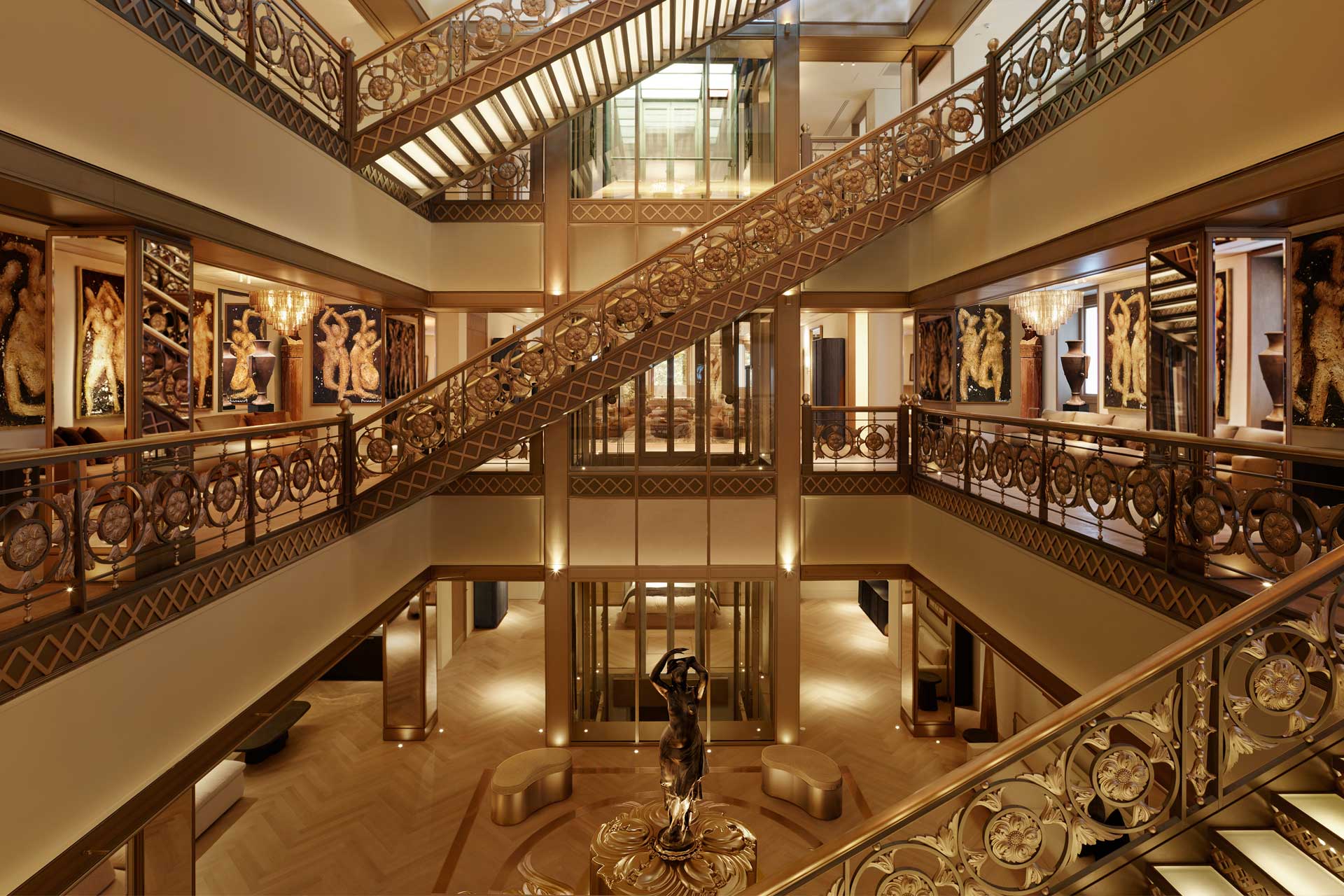 The Gallery, spanning seven levels, is connected by a soaring atrium of floating cast medallion stairs and a glass elevator that magically appears, then disappears from an invisible shaft atop the rooftop garden. At the centre is a cast bronze Caryatid, circa 1870, attributed to French sculptor Louis-Félix Chabaud, who is renowned for his sculptures at the Louvre and the Palais Garnier opera house. The term caryatid was first recorded in Latin form in De Architectura. Beyond their structural role, caryatids symbolise strength, grace and ingenuity, a harmony between art and engineering. The caryatid was selected as a symbol of not only the retailer’s desire to connect and create harmony between the architecture, design, art, history and hospitality offerings of RH Paris, but also its desire to connect and create harmony between RH and the people of Paris.