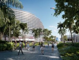 OMA’s design will transform Miami Beach’s convention center into a 21st century facility, adding an 800-room hotel, new ballroom and meeting facilities and a large public park, while reducing the overall footprint of the site and creating new connections with the urban fabric of Miami Beach.